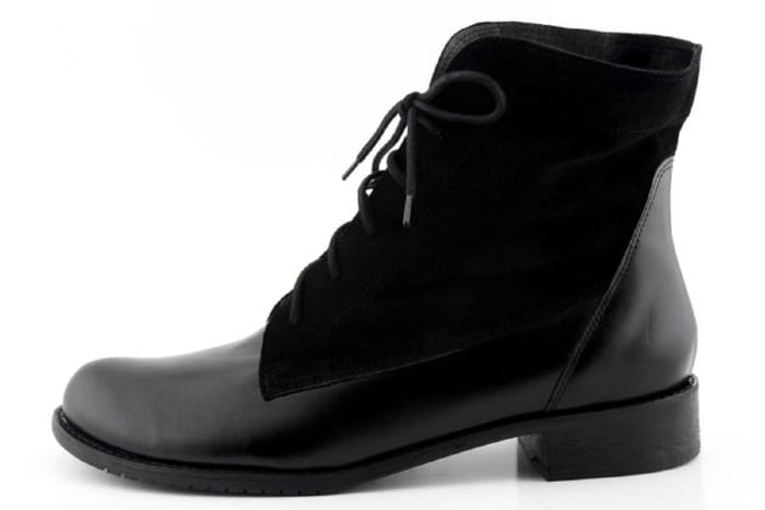 Na zdjęciu - buty wykonane na podeszwie z noskiem okrągłym i płaskim obcasem 2,5 cm -3 cm